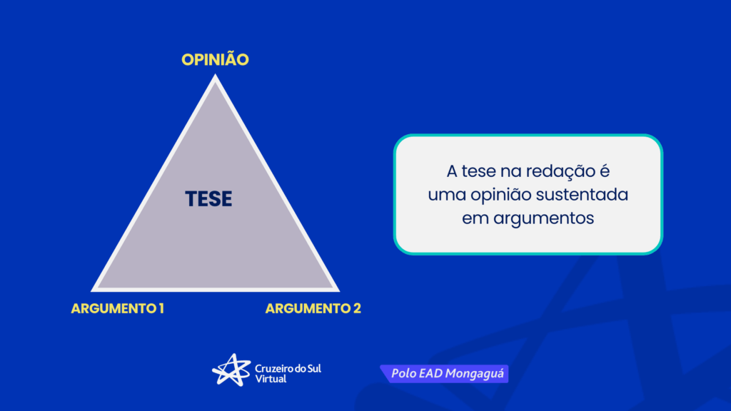 A tese na redação do Enem é o seu ponto de vista e a ideia central que você vai defender ao longo do texto, apresentando sua opinião crítica sobre o tema proposto. Ela e é o coração da redação. Precisa ser clara, objetiva e possível de ser defendida ao longo do texto.